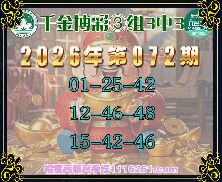 主题: 072期:🏅福星高照【千金博彩✨③组3中3】¥2680