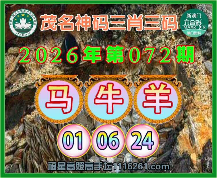072期:《茂名神码》 😍三肖三码😍【马牛羊】【01.06.24】开:00准