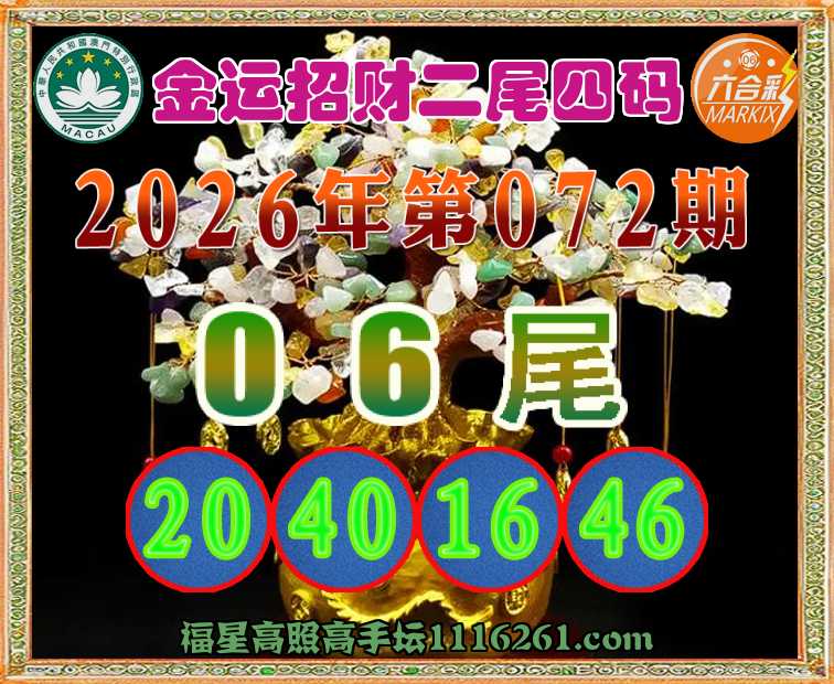 072期: 👚『金运招财』 👚二尾四码👚【06尾主:20.40.16.46】开:00准